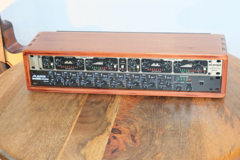 Two rack units for 19″ gear. Natural finish. Solid half-inch Cedar.